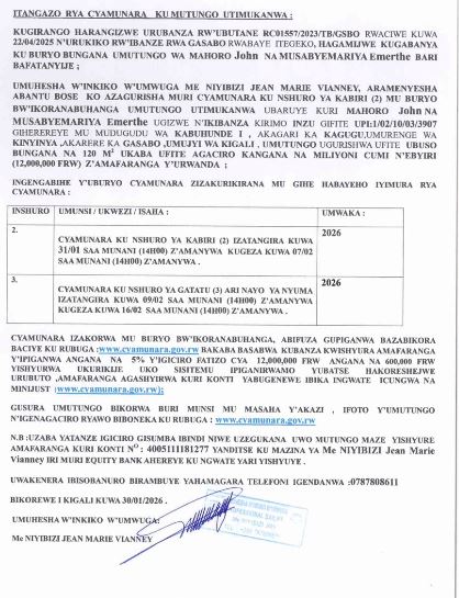 UMUHESHA W’INKIKO W’UMWUGA Me NIYIBIZI JEAN MARIE VIANNEY ABANTU BOSE KO HAZATANGIZWA IPIGANWA MURI CYAMUNARA KU MITUNGO ITIMUKANWA.