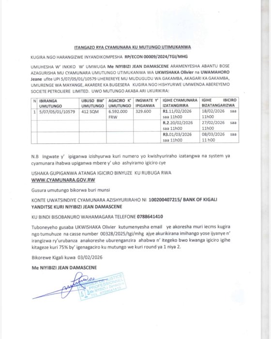 UMUHESHA W’INKIKO W’UMWUGA Me NIYIBIZI JEAN DAMASCENE ABANTU BOSE KO HAZATANGIZWA IPIGANWA MURI CYAMUNARA KU MITUNGO ITIMUKANWA