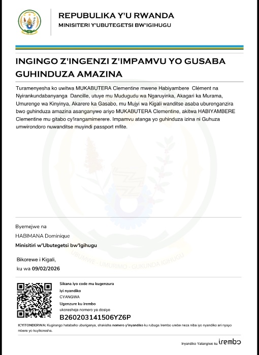 MUKABUTERA Clementine yasabye guhindurirwa amazina akitwa HABIYAMBERE Clementine