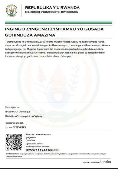 Uwitwa NIYIGENA Neema yasabye guhindura amazina mu buryo bwemewe n’amategeko akitwa RUBERA Neema mu bitabo by’irangamimerere!