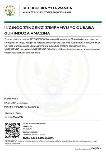 NIYONSENGA XXX yasabye guhindura amazina akitwa akitwa NIYONSENGA Djiad mu bitabo by’irangamimerere.