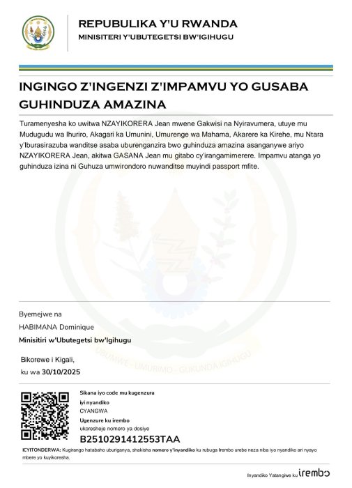 NZAYIKORERA Jean yasabye guhindura amazina mu buryo bwemewe n’amategeko akitwa GASANA Jean mu bitabo by’irangamimerere!