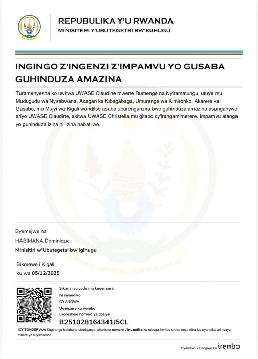 UWASE Claudina yasabye guhindura amazina akitwa UWASE Christella mu bitabo by’irangamimerere!