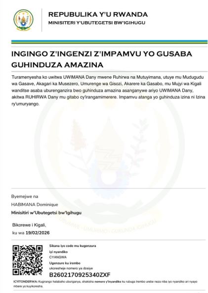 ko UWIMANA Dany yasabye guhindurirwa amazina akitwa RUHIRWA Dany mu gitabo cyirangamimerere impamvu murayisanga mu itangazo rirambuye..