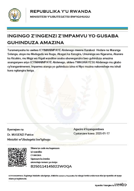 Uwitwa Uwitwa ICYIMANIMPAYE Abdenego yasabye guhindura amazina mu buryo bwemewe n’amategeko akitwa TWAGIRAYESU Abdenego mu bitabo by’irangamimerere!