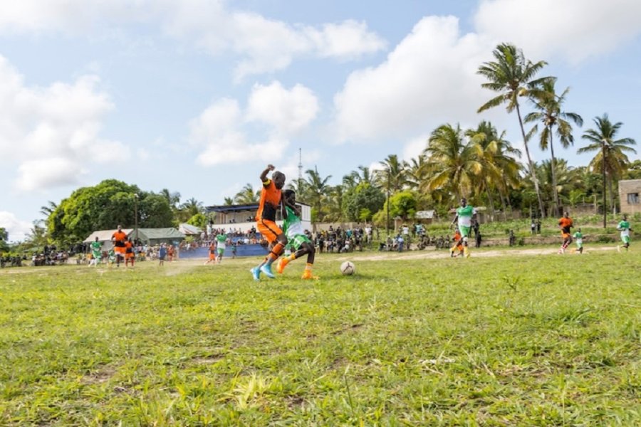 Nyuma y’umuganda Abasirikare n’Abapolisi b’u Rwanda bari kugarura umutekano muri Mozambique bakinnye umupira w’amaguru n’abaturage bo mu Mujyi wa Macomia, umukino warangiye banganyije ubusa ku busa.
