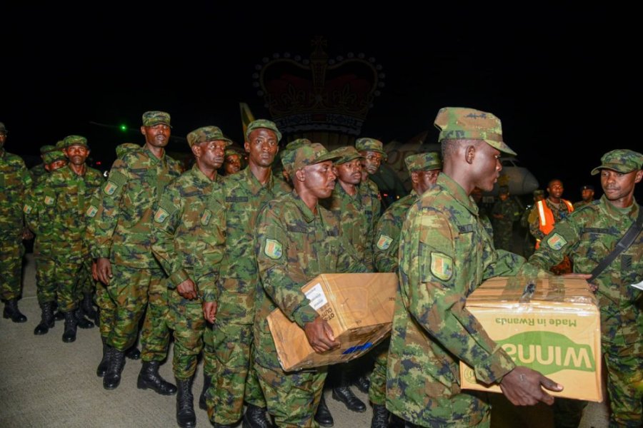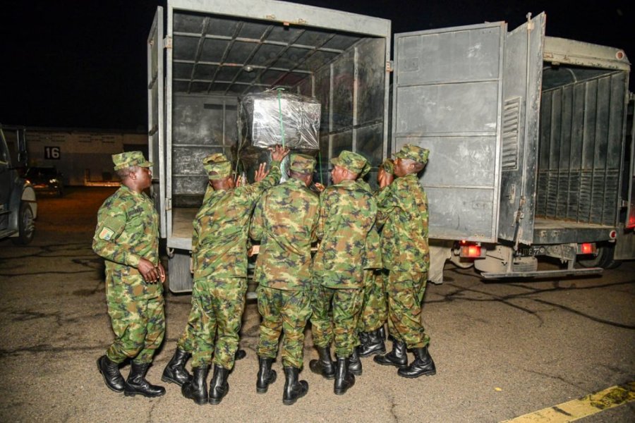 Amafoto yashyizwe hanze n’Igisirikare cya Jamaica, agaragaza abasirikare ba RDF bakirwa ku kibuga cy’indege, ndetse baterura imizigo bari bitwaje izabafasha mu kazi kabo k’ubutabazi.