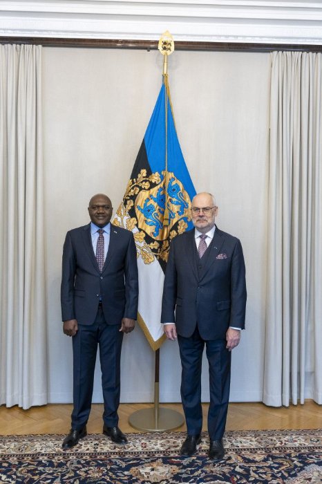 Ambasaderi Dushimimana Lambert yashyikirije Perezida wa Estonia, Alar Karis impapuro zimwemerera guhagararira inyungu z’u Rwanda muri iki gihugu.
