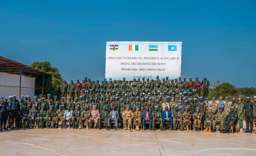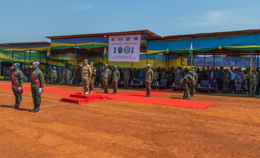 Abasirikare b’u Rwanda bari mu butumwa bwo kubungabunga amahoro mu gace ka Bria muri Centrafrique, bambitswe imidali y’Umuryango w’Abibumbye mu kuzirikana umuhate wabo n’uruhare bagira mu kugarura amahoro muri iki gihugu.