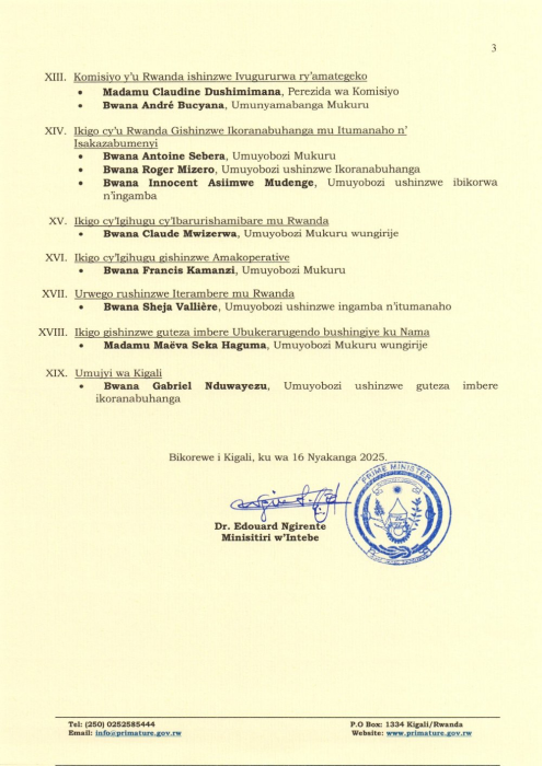 Mu bandi bayobozi bashyizwe mu myanya n’iyi Nama y’Abaminisitiri harimo Alphonsine Mirembe, Umunyamabanga Mukuru w’Umutwe w’Abadepite, asimbuye Amb. Jeanine Kambanda, wagizwe Umunyamabanga Mukuru muri Komisiyo y’Igihugu y’Uburenganzira bwa Muntu.