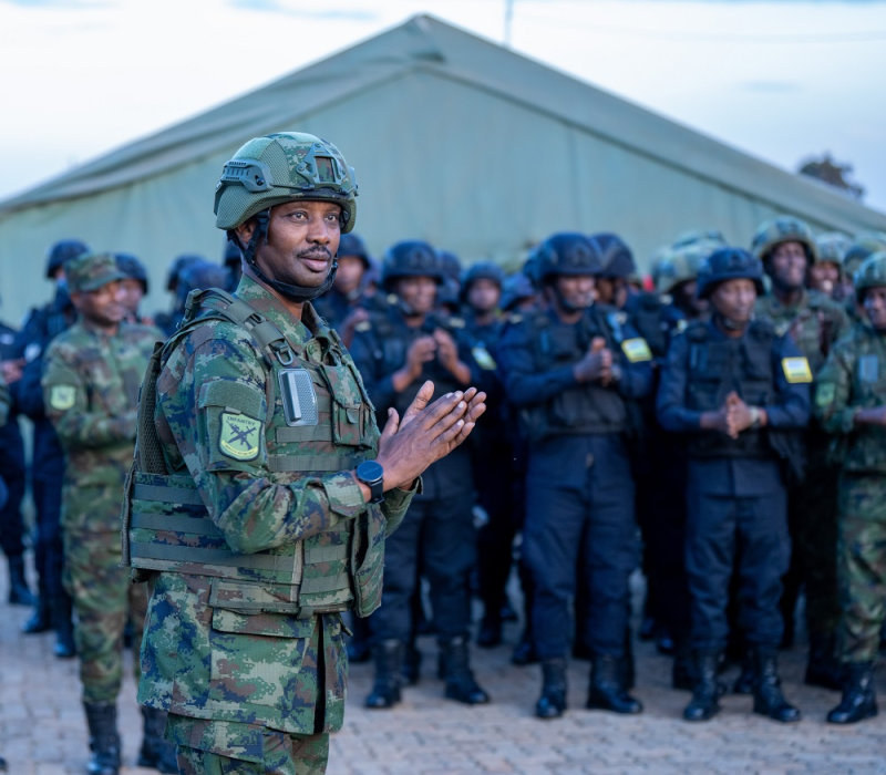 Umugaba Mukuru w’Inkeragutabara, Maj Gen Alex Kagame n’Umuyobozi Mukuru Wungirije wa Polisi y’u Rwanda ushinzwe Ibikorwa (DIGP) Vincent Sano, bakiriye itsinda ry’ingabo n’abapolisi bamaze umwaka umwe mu butumwa bwo kugarura amahoro mu Ntara ya Cabo Delgado muri Mozambique.