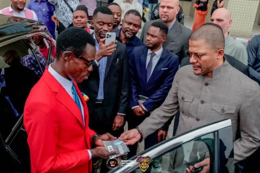 Minisitiri wa Siporo n’Imyidagaduro muri Repubulika Iharanira Demokarasi ya Congo, Didier Budimbu, yashyikirije igihembo cy’imodoka nshyashya yo mu bwoko bwa Jeep, umufana Michel Kuka, wamamaye nka Lumumba Vea, wafanaga ikipe y’Igihugu ubwo yari mu Gikombe cya Afurika cya 2025.