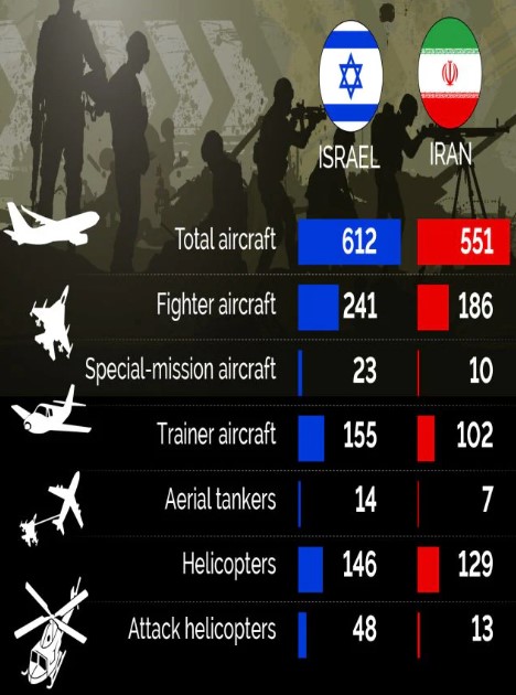 Duhereye nko ku bijyanye n’indege z’intambara, Israel ni kimwe mu bihugu bifite indege za gisirikare ziri mu zigezweho ku rwego rw’Isi. Iki gisirikare kibarirwa nibura indege 600, zirimo 40% zigezweho, zikoreshwa mu ntambara.