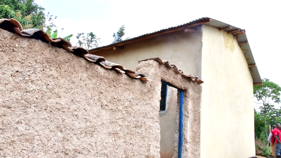 Inzu yubatswe n’ubuyobozi bw’Umurenge, abaturage bamufasha kubaka ibikoni. Ifite agaciro ka miliyoni zirenga eshatu.