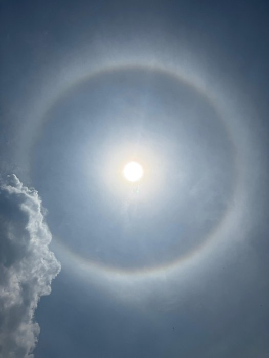 Uyu Mukuru w’Igihugu yashyize ku mbuga nkoranyambaga ifoto yafashwe ubwo bari mu giterane, igaragaza izuba rizengurutswe n’uruziga, iruhande hari igicu kiremereye.