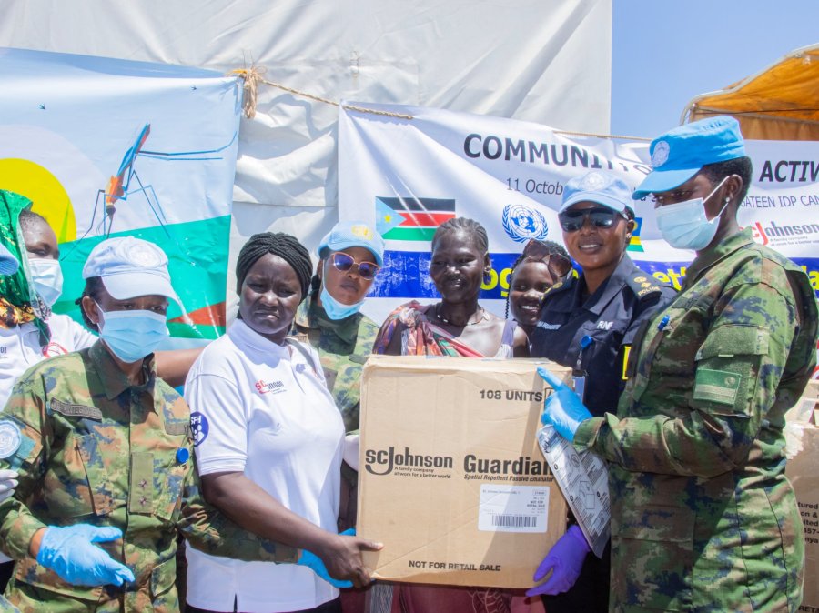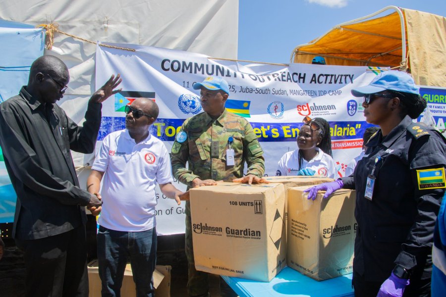 Abasirikare n’abapolisi b’Abanyarwanda bari mu butumwa bw’amahoro bwa Loni muri Sudani y’Epfo (UNMISS) ku bufatanye n’Abanyarwanda baba muri Sudani y’Epfo ndetse n’Umuryango wa SHF (Society for Family Health), bakoze igikorwa cyo kurwanya malariya mu nkambi y’impunzi ya Mangateen iherereye i Juba.