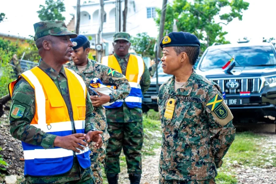 Umugaba Mukuru w’Ingabo za Jamayika (JDF), Vice Admiral Antonette Wemyss-Gorman, yasuye abasirikare b’u Rwanda bari mu gace kitwa Trelawny, zagiye mu butumwa bwo gutanga ubufasha mu bikorwa byo gusana ibikorwa byangijwe n’inkubi y’umuyaga Hurricane Melissa.