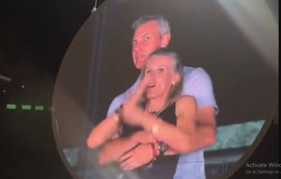 Andy Bryon wari mu gitaramo cyabereye muri Boston muri Stade Gillette n’umukozi we, bagaragaye babyinana, umugabo yagwatiriye uwo mugore amuturutse inyuma, amaboko ye yombi ari mu nda, undi na we amwiyegamijeho bisa nk’aho bari guhuza ibitsina.