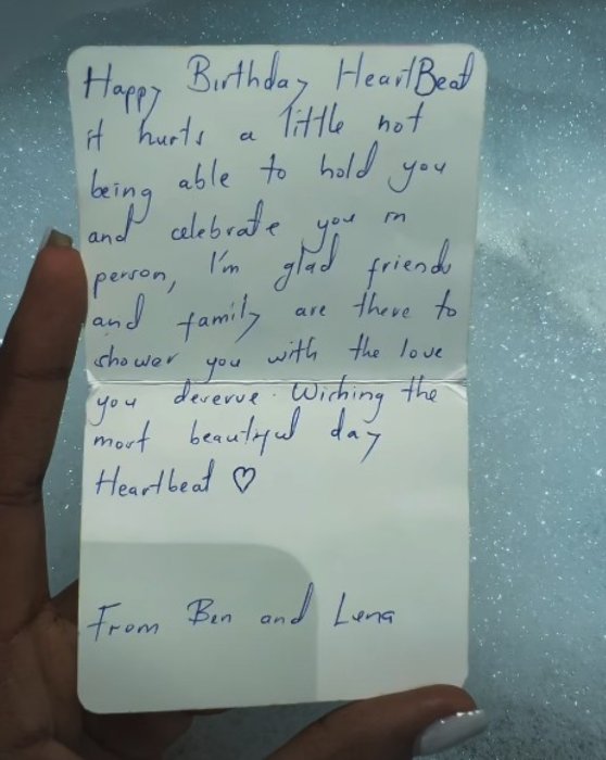Muri iyi baruwa The Ben yagize ati “Isabukuru nziza, mutima wanjye. Birababaje kuba tutari kumwe ngo wizihize uyu munsi turi kumwe imbonankubone. Nishimiye ko inshuti n’umuryango wawe bari hafi yawe bakuzirikana bakaguha urukundo ukwiriye. Nkwifurije umunsi mwiza cyane kurusha iyindi yose.”