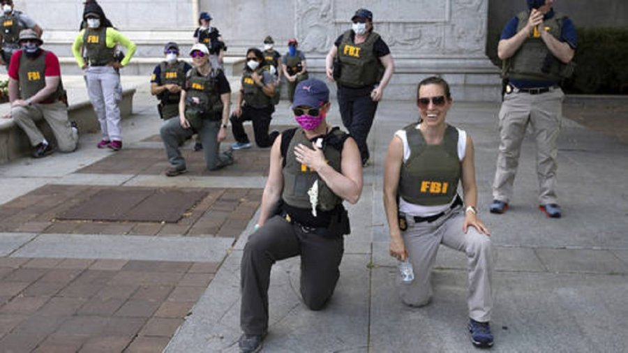 Ubwo habaga imyigaragambyo mu 2020 yo kwamagana ihohoterwa rikorerwa abirabura muri Washington, umufotozi yafotoye abakozi ba FBI na bo bapfukamye ku muhanda, bagashinjwa kwivanga mu bya politiki.