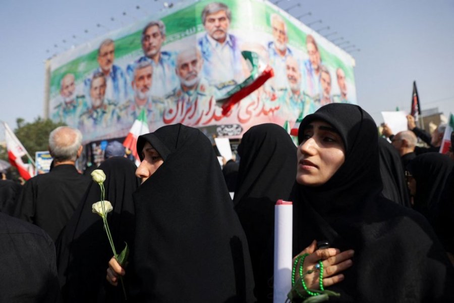 Mu murwa mukuru wa Tehran, abantu benshi bateraniye hamwe bafite amabendera n’udutambaro twanditseho ubutumwa buha icyubahiro abantu barimo abasirikare bakomeye n’abashakashatsi mu bya nucléaire bishwe muri iyi ntambara yamaze iminsi 12.