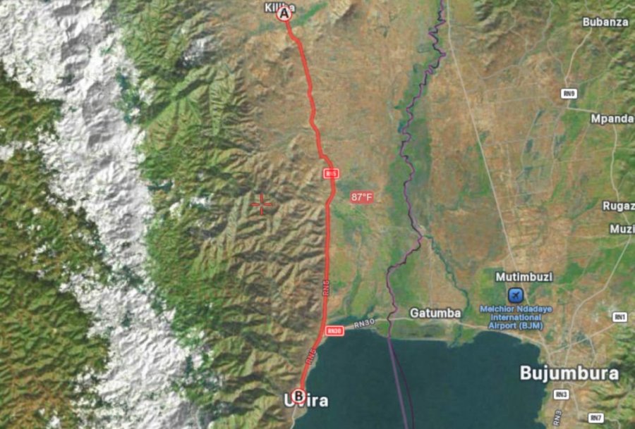 Uri hafi y’ikibuga cy’Indege cyitiriwe Merchior Ndadaye, ni ukuvuga kilometero 20 ukoresheje inzira yo mu kirere. Ni wo nzira ingabo z’u Burundi zakoreshaga zinjira muri Kivu y’Amajyepfo n’iy’Amajyaruguru mu bikorwa byo gufasha FARDC mu ntambara ihanganyemo na AFC/M23.