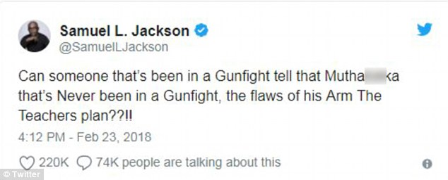 Samuel L Jackson yatutse Trump ibitutsi bibi cyane ku rukuta rwe rwa Twitter Umuryango utasubiramo,anenga aya magambo ya Trump aho yibajije niba hari umwe mu bari muri iki gitero waba yamusabye kwemerera abarimu gukoresha intwaro ku ishuli.