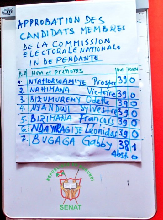 Inteko ishinga amategeko,umutwe wa Sena mu Burundi yemeje abagiye kuyobora umutwe ushinzwe gutegura amatora (CENI) bashya muri iki gihugu cyo mu majyepfo y’u Rwanda.