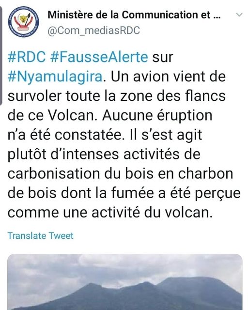Nyuma yo kugenzura Ikirunga cya Nyamuragira ikoresheje indege, Guverinoma ya RDC yisubiyeho itangaza ko iki kirunga kitigeze kiruka. Umwotsi wagaragaye wari uw’ibiti byari biri gutwikwamo amakara.
