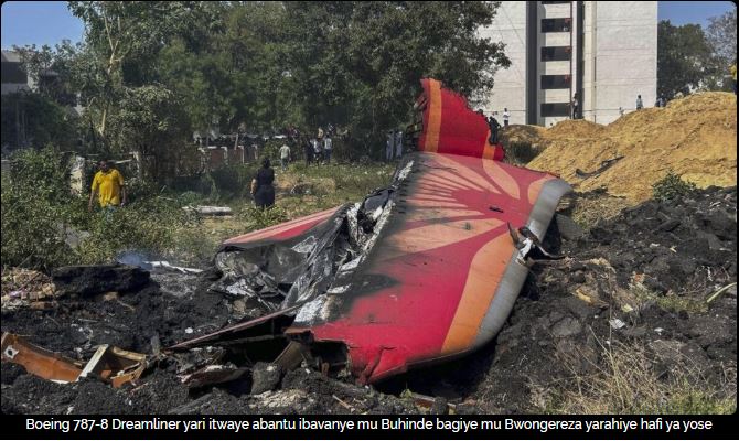 Ni indege ya Boeing 787-8 Dreamliner yahanutse nyuma y’igihe gito ihagurukiye mu Mujyi wa Ahmedabad wo mu Burengerazuba bw’u Buhinde igiye i Londres mu Bwongereza.