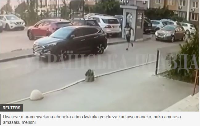 Amashusho ya ’cameras’ z’umutekano – yagenzuwe n’ibiro ntaramakuru Reuters – agaragaza umugabo wambaye ipantalo y’ikoboyi n’umupira wijimye w’amaboko magufi arimo gusohoka mu nyubako iri mu karere ka Holosiivskyi ko mu majyepfo ya Kyiv, nyuma gato ya saa tatu za mu gitondo (9:00) ku isaha yaho ku wa kane, ni ukuvuga saa mbili za mu gitondo (8:00) ku isaha yo mu Rwanda no mu Burundi.