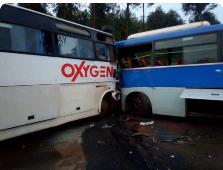 Volcano yavaga Kampala yagoganye n’iyi Oxygen.Biravugwa ko umushoferi wa Trinity wari wasabye Lift, Abashoferi ba za Bus zagoganye n’ababafasha akazi uko ari 2 ngo bahise bahasiga ubuzima.