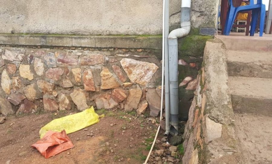 Iyo nzu igaragara imbere ni yo barimo bashakira inzira z’amazi bituma batangira kubona n’abantu bikekwa ko bishwe muri Jenoside