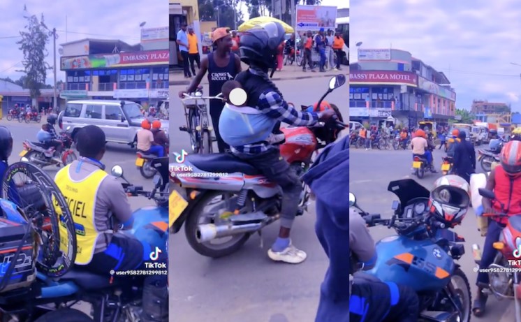 Polisi y’u Rwanda kandi yatangaje ko uyu mumotari wagaragaye atwaye moto anahetse umwana mu mugongo, ari kubazwa icyamuteye kubikora.