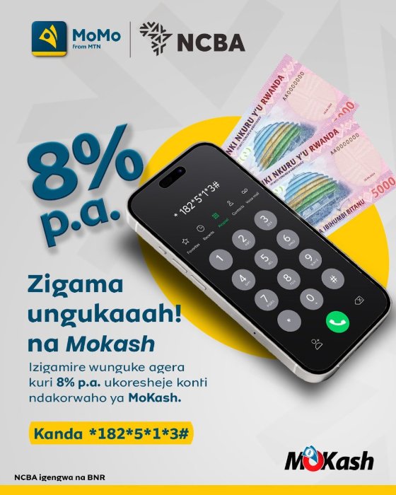 Mobile Money Rwanda Ltd ifatanyije na NCBA Bank Rwanda, bamenyesheje abakiliya bakoresha serivisi za Mobile Money bizigamira cyangwa baka inguzanyo banyuze muri MoKash, ko hamuritswe serivisi nshya ebyiri za ‘Lock Savings’ na ‘Loan Top Up’.