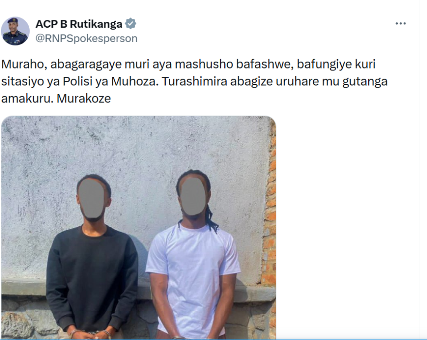 ACP Rutikanga yahise asubiza ati “abagaragaye muri aya mashusho bafashwe, bafungiye kuri sitasiyo ya Polisi ya Muhoza. Turashimira abagize uruhare mu gutanga amakuru.”