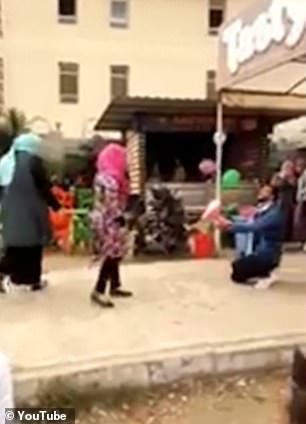 Muri aya mashusho,yagaragaje umusore apfukamye hasi umukobwa aza yiruka nk’iya gatera aramuhobera amugwamo wese nk’abari gusabana kuzabana byatumye abayisilamu bifata ku munwa.