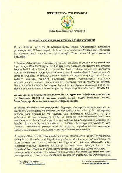 Abagize Guverinoma bagiye mu kiruhuko kizarangira kuwa 31 Kanama 2021.