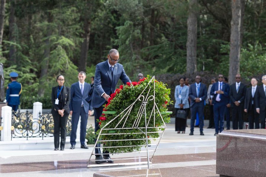 Mbere y’uko hasinwa aya masezerano, Perezida Kagame yasuye Urwibutso rwa Alley of Honor, yunamira Heydar Aliyev, wabaye perezida wa gatatu w’iki gihugu na Zarifa Aliyeva wari umugore we.