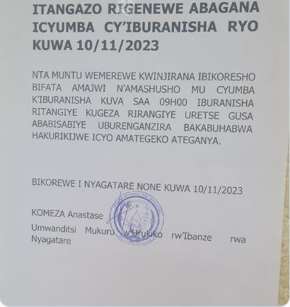N’icyemezo kiri mu itangazo ryashyizweho umukono n’umwanditsi mukuru w’urukiko rw’ibanze rwa Nyagatare.