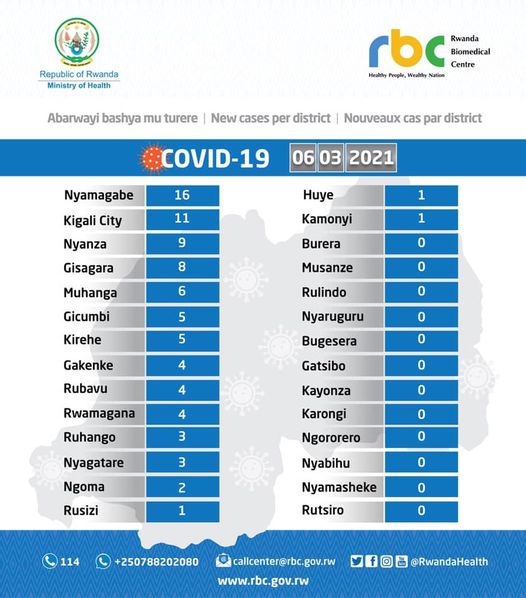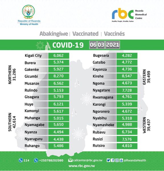 Mu minsi ibiri ishize mu Rwanda abantu 158,898 bamaze gukingirwa #COVID19. Harimo 83,842 bakingiwe kuri uyu wa Gatandatu tariki ya 06 Weurwe 2021.
