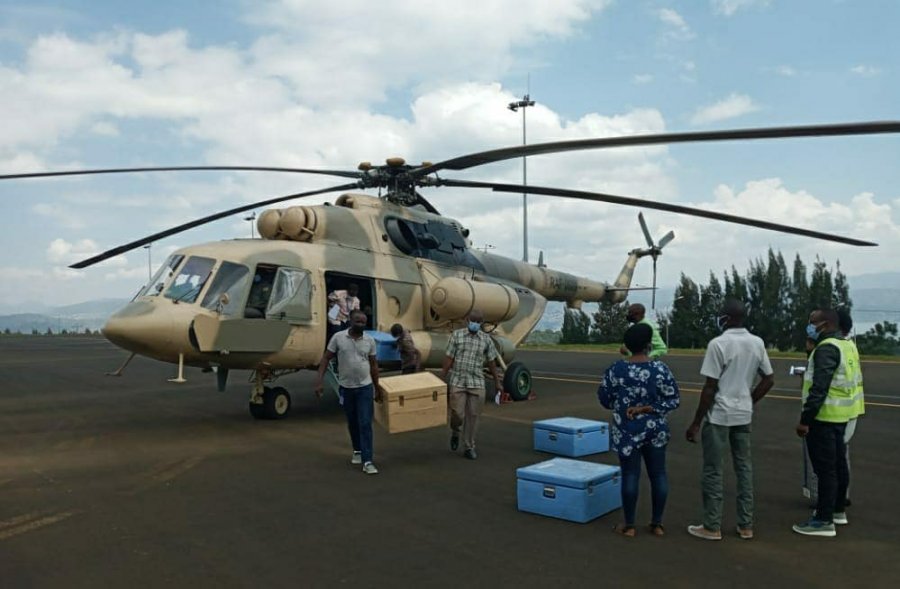 Ku kibuga cy’Indege kiri hafi n’Ibiro by’Akarere ka Nyaruguru, Indege ya RAF -0609 yahageza itanga inkingo 5500 zo gukingira Covid-19 zizahabwa abaturage ku nshuro ya kabiri.