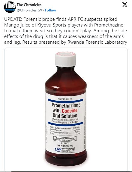 Nyuma y’iperereza rigikomeje kuri ibi byaba bakekwaho, amakuru yatanzwe na Laboratwari y’u Rwanda y’Ibimenyetso bishingiye ku bumenyi n’ubuhanga bikoreshwa mu Butabera, RFI (Rwanda Forensic Laboratory), yemeza ko aba bakozi bahaye abakinnyi ba Kiyovu Sports umutobe uri mu bwoko bwa Mango wari urimo uburozi bwitwa Promethazine kugira ngo ubace intege mu ngingo zose z’umubiri maze haboneke intsinzi ku kipe y’Ingabo.