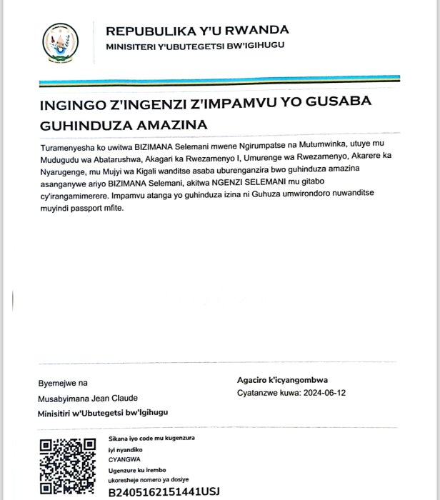 Uwitwa BIZIMANA Selemani yasabye guhindura amazina mu buryo bwemewe n’amategeko akitwa NGENZI Selemani mu bitabo by’irangamimerere!