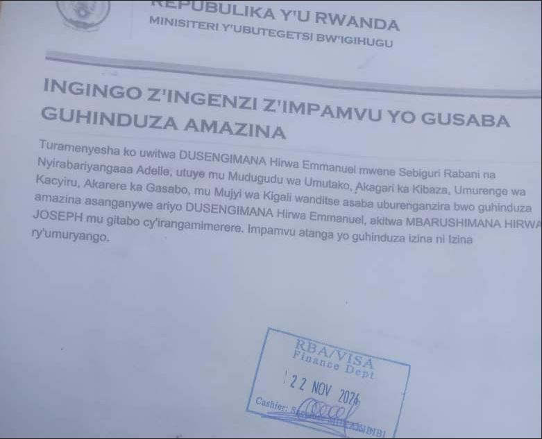 Uwitwa DUSENGIMANA Hirwa Emmanuel yasabye guhindura amazina mu buryo bwemewe n’amategeko akitwa MBARUSHIMANA Hirwa Joseph mu bitabo by’irangamimerere!