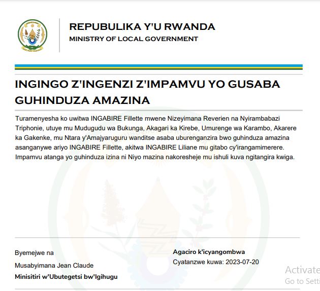 Itangazo:INGABIRE Fillette yasabye guhindura amazina akitwa INGABIRE Liliane
