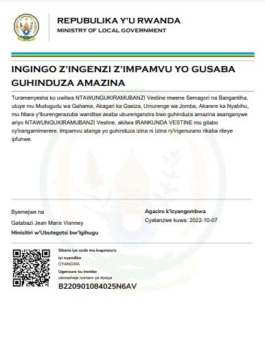 Uwitwa NTAWUNGUKIRAMUBANZI Vestine yasabye guhindura amazina mu buryo bwemewe n’amategeko akitwa IRANKUNDA Vestine mu bitabo by’irangamimerere.