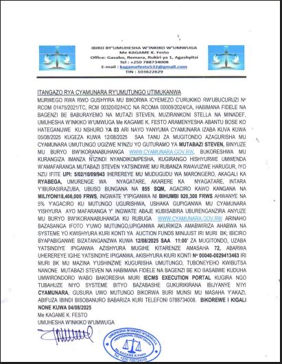 Umuhesha w’inkiko w’umwuga aramenyesha abantu bose ko hateganijwe ku ncuro ya gatatu ari nayo yanyuma cyamunara y’umutungo utimukanwa uherereye mu karere ka Nyagatare