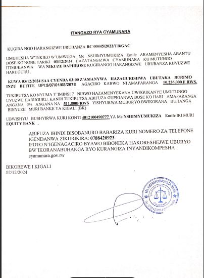UMUHESHA W’INKIKO W’UMWUGA Me NSHIMYUMUKIZA EMILE ARAMYENYESHA ABANTU BOSE KO ARI GUTEZA CYAMUNARA UMUTUNGO UTIMUKANWA WA MUKANKUSI DAPHROSE