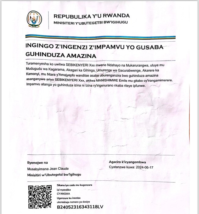 Itangazo: SEBIKENYELI Xxx yasabye guhindura amazina akitwa MANISHIMWE Emile